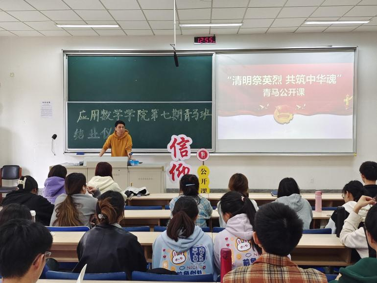 李攻明老师以“清明祭英烈 共筑中华魂”为主题,进行了青马公开课授课。他从“你好,青春!——党史中那些可爱的青年”“致敬,青春!——传承中国青年的使命担当”“前进,青春!——从党史中汲取力量增强青年的志气、骨气、底气”三个板块向同学们讲述党史中的青年故事,引导同学们传承青年精神,勇担时代使命。