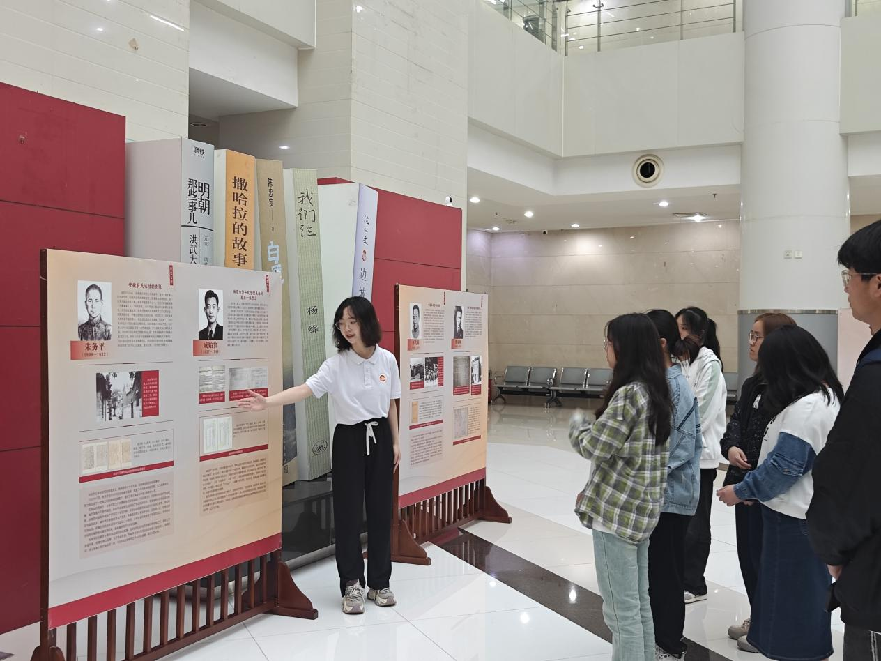 组织学生在仙林校区图书馆二楼展示大厅参观雨花台烈士纪念馆馆藏珍贵文物故事展暨雨花英烈事迹与精神丛书展。