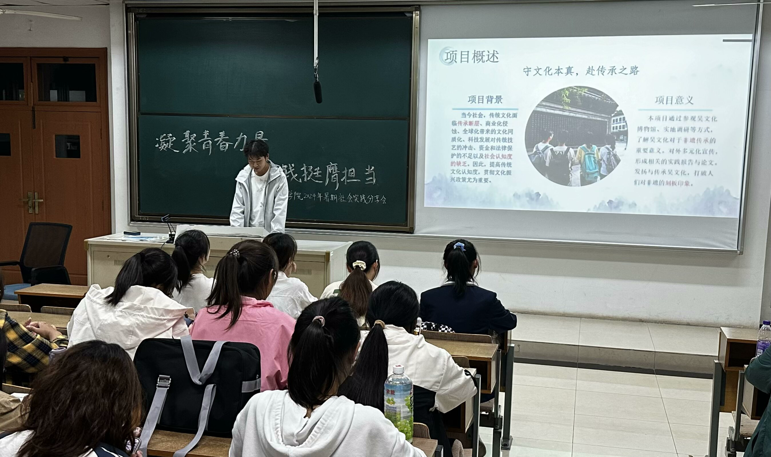 分享会由暑期社会实践介绍、院级表彰、老师讲话、优秀团队分享和优秀通讯员分享五个环节组成。首先,主持人对2024年暑期社会实践活动进行介绍。本次暑期社会实践看球直播