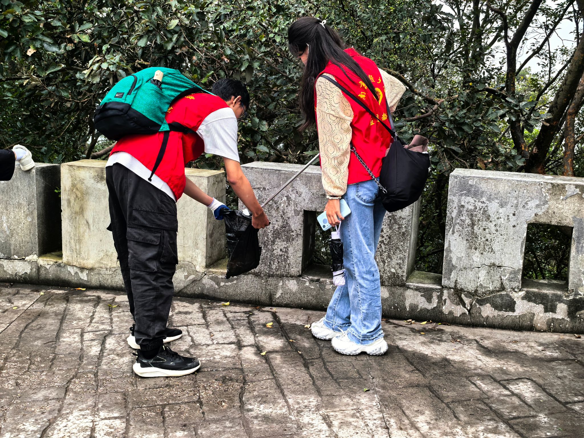 团委组织15名志愿者前往紫金山开展“踏秋登峰聚,绿色环保行”志愿活动。