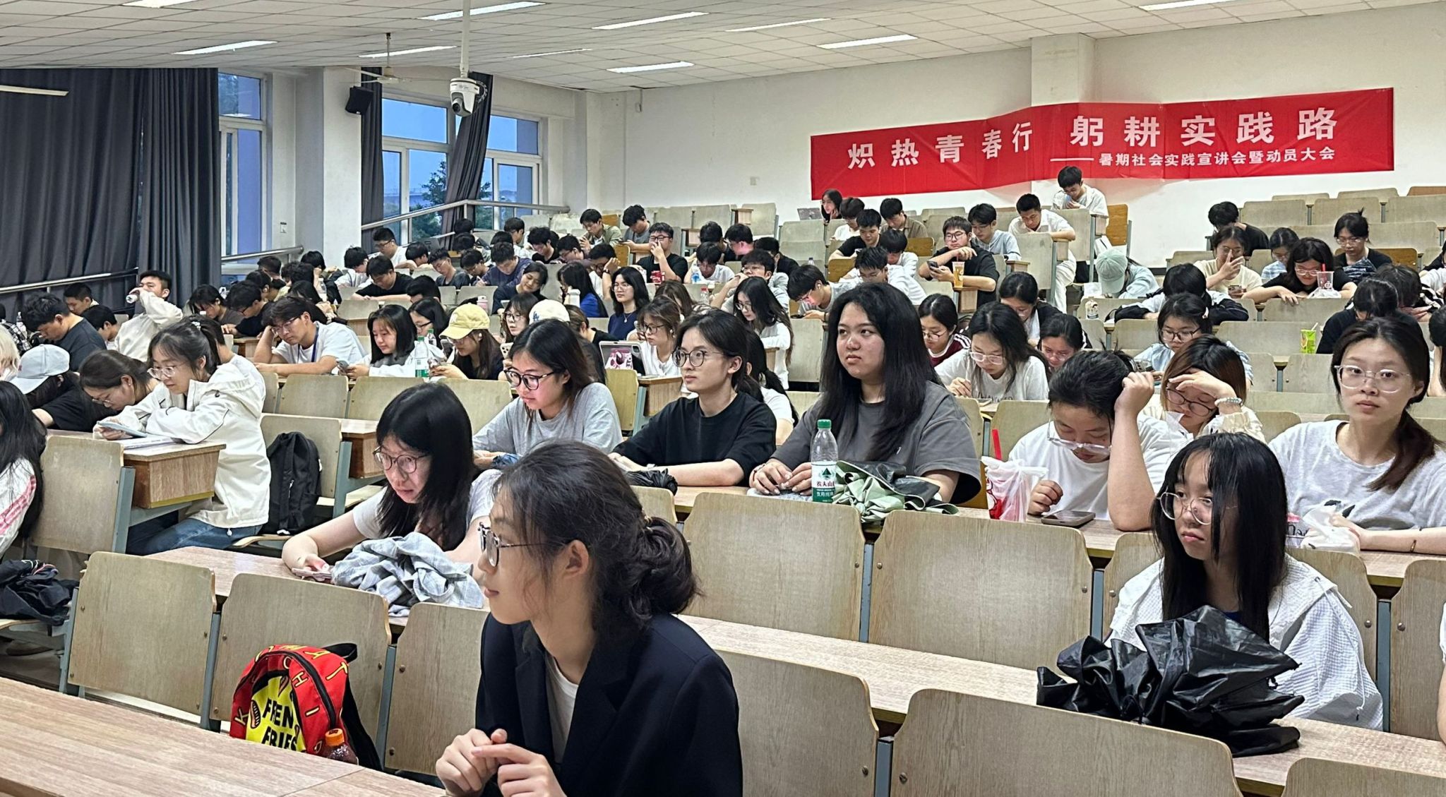 在仙林校区博远楼110教室召开2025年暑期社会实践宣讲会暨动员大会。足球比赛直播