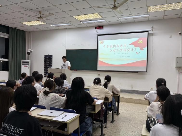 多个团支部以“不忘初心,忆征途”为主题,将党史学习教育与专业学习、实践体验深度融合,让理论学习既有“深度”又有“温度”。数学2401团支部创新提出“数学+党史”模式,通过梳理党史中的关键数字,借先辈事迹、用数学思维助团员悟报国内涵;金数2402团支部开展党史知识竞赛,竞赛题目涵盖党史重要事件、人物事迹等核心内容,团员们热情高涨、踊跃参与;数学2301团支部组织观看《开国大典》、重温入团誓词,强化团员“以爱国情践报国行”意识。