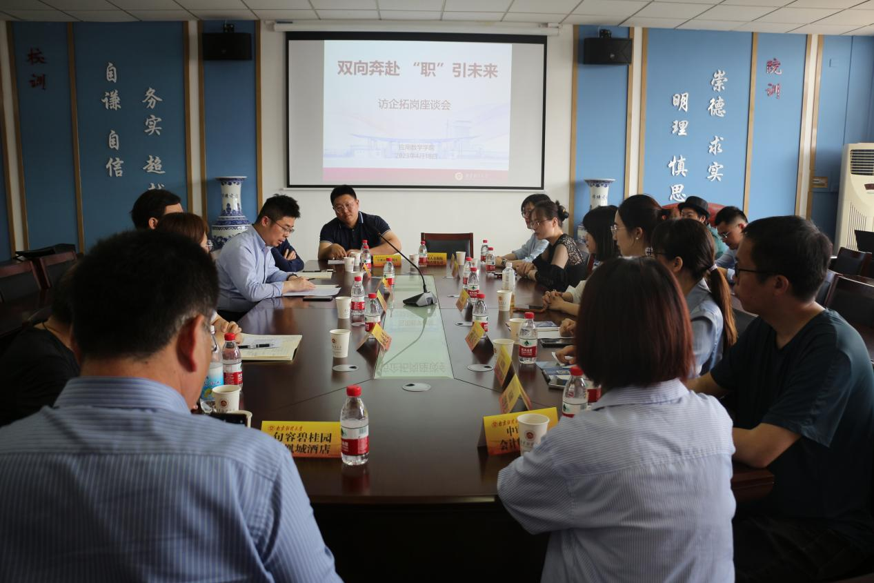 为深入学习贯彻党的二十大精神,全面落实党中央、国务院对高校毕业生就业创业工作的决策部署,抢抓春季招聘关键期,深化供需对接,引领毕业生前往重点产业、关键领域就业,4月18日中午看球直播 在仙林校区德业楼508会议室举办访企拓岗座谈会。足球比赛直播 领导班子、毕业班辅导员和东方财富证券股份有限公司江苏分公司、国信证券股份有限公司、南京博涯信息技术有限公司、中审亚太会计师事务所、中国人寿保险有限公司以及杭州银行南京分行等用人单位代表参加了座谈。座谈会由足球比赛直播 党总支副书记孙晓飞主持。