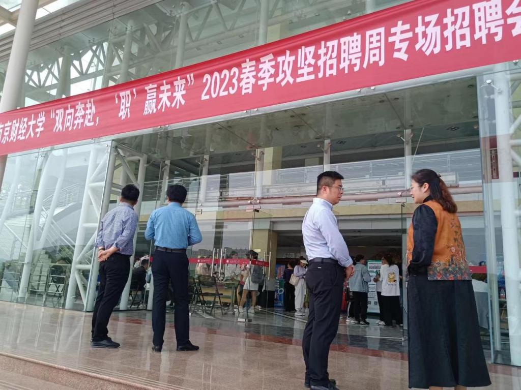 紧接着,在下午14:00至17:00,我校在仙林校区大学生活动中心举办了“双向奔赴,‘职’赢未来”南京财经大学2023春季攻坚招聘会,本次招聘会由我校足球比赛直播 、营销与物流管理足球比赛直播 、信息工程足球比赛直播 、国际经贸足球比赛直播 、新闻足球比赛直播 联合举办,校党委常委、副校长赵国栋深入会场,与参会企业代表亲切交谈,了解单位用人需求。各足球比赛直播 党政领导及辅导员到场指导。各招聘单位、南京财经大学2023届本科生、研究生、部分有暑期实习需求的2024届毕业生前来参加。