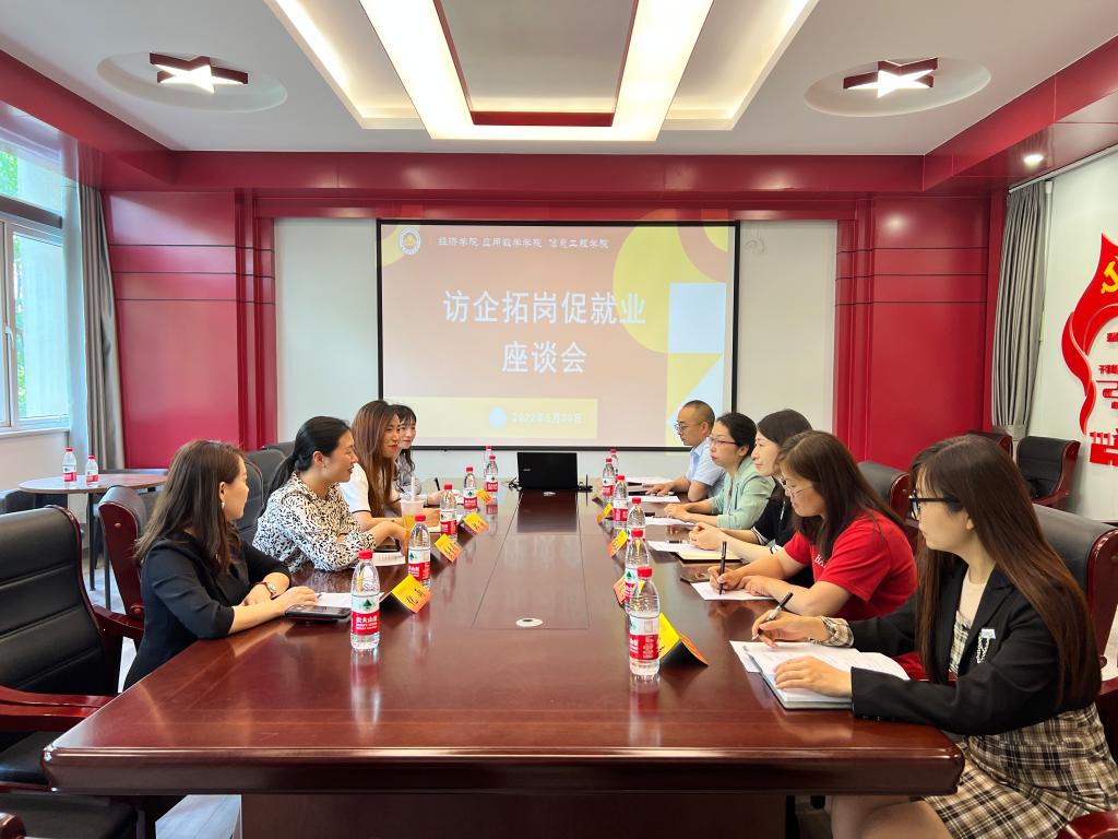 为促进毕业生更加充分更高质量就业,进一步深化校企合作,5月20日中午,足球比赛直播 、经济足球比赛直播 、信息工程足球比赛直播 联合开展“访企拓岗促就业”专项行动,邀请北京中植基金销售有限公司、南京博涯信息有限公司、嘉环科技股份有限公司等三家企业相关负责人在德经楼329会议室座谈交流。足球比赛直播 党总支副书记布丹丹、经济足球比赛直播 党委副书记袁怡琨、信息工程足球比赛直播 党委副书记袁军,三所足球比赛直播 学工办主任以及部分学生代表参加了座谈会。