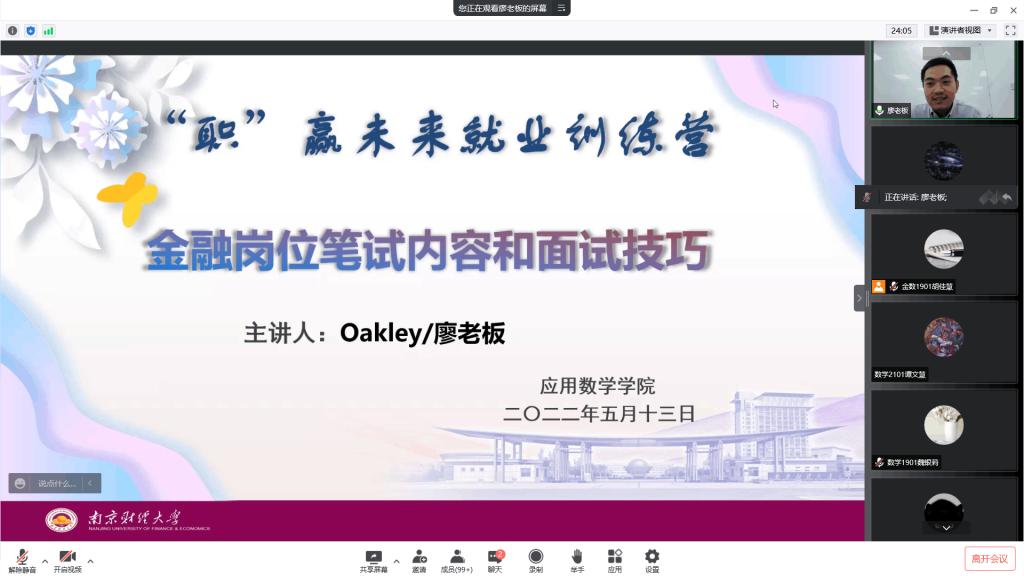 廖哲禺老师介绍了金融行业校招前应做的准备,以及金融行业概况、个人简历制作、校招单位的来源等。他从如何制作一份吸引行业关注的简历入手,详细分析了简历的构成要素以及如何从学历背景、项目比赛、证书技能、实习经历和校园经历等方面更准确、明晰地展示个人履历。廖哲禺老师提到金融行业薪酬待遇高的同时对应的是对职业人的高素质和高要求,他分享了最能体现综合素质的面试技巧,提醒同学们在面试环节应注意的问题。