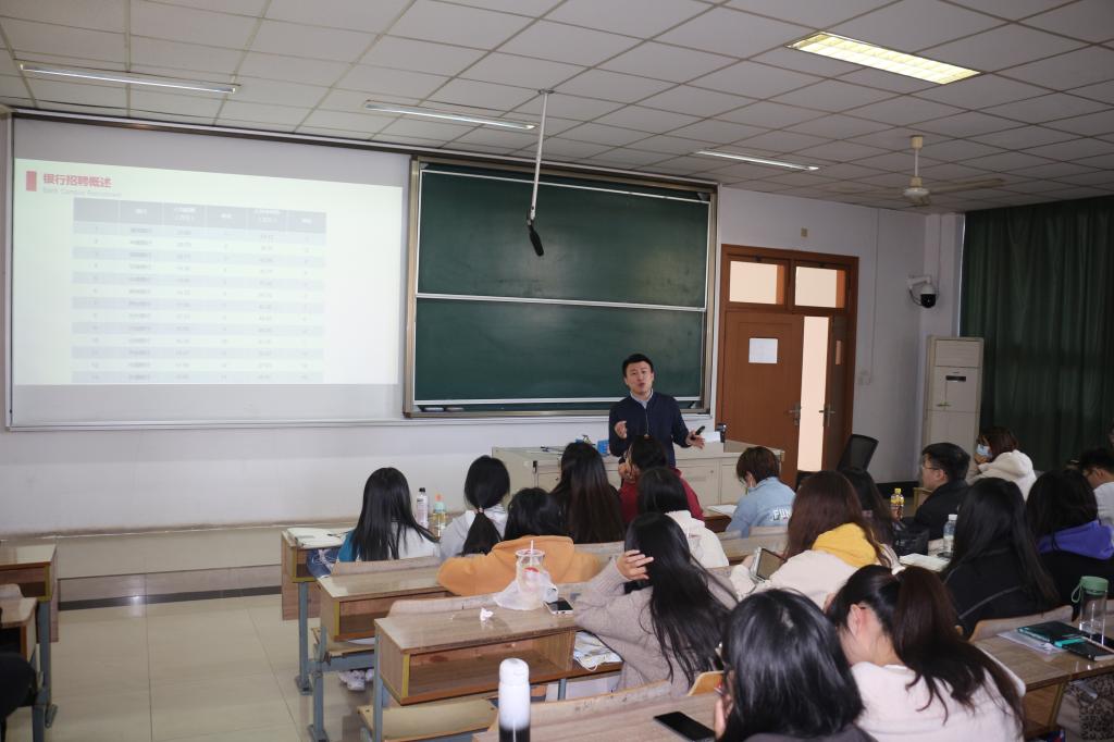 在博远楼106教室举办银行上岸技巧分享会。分享会由中国建设银行、招商银行特邀内训师梅高翔老师主讲,足球比赛直播