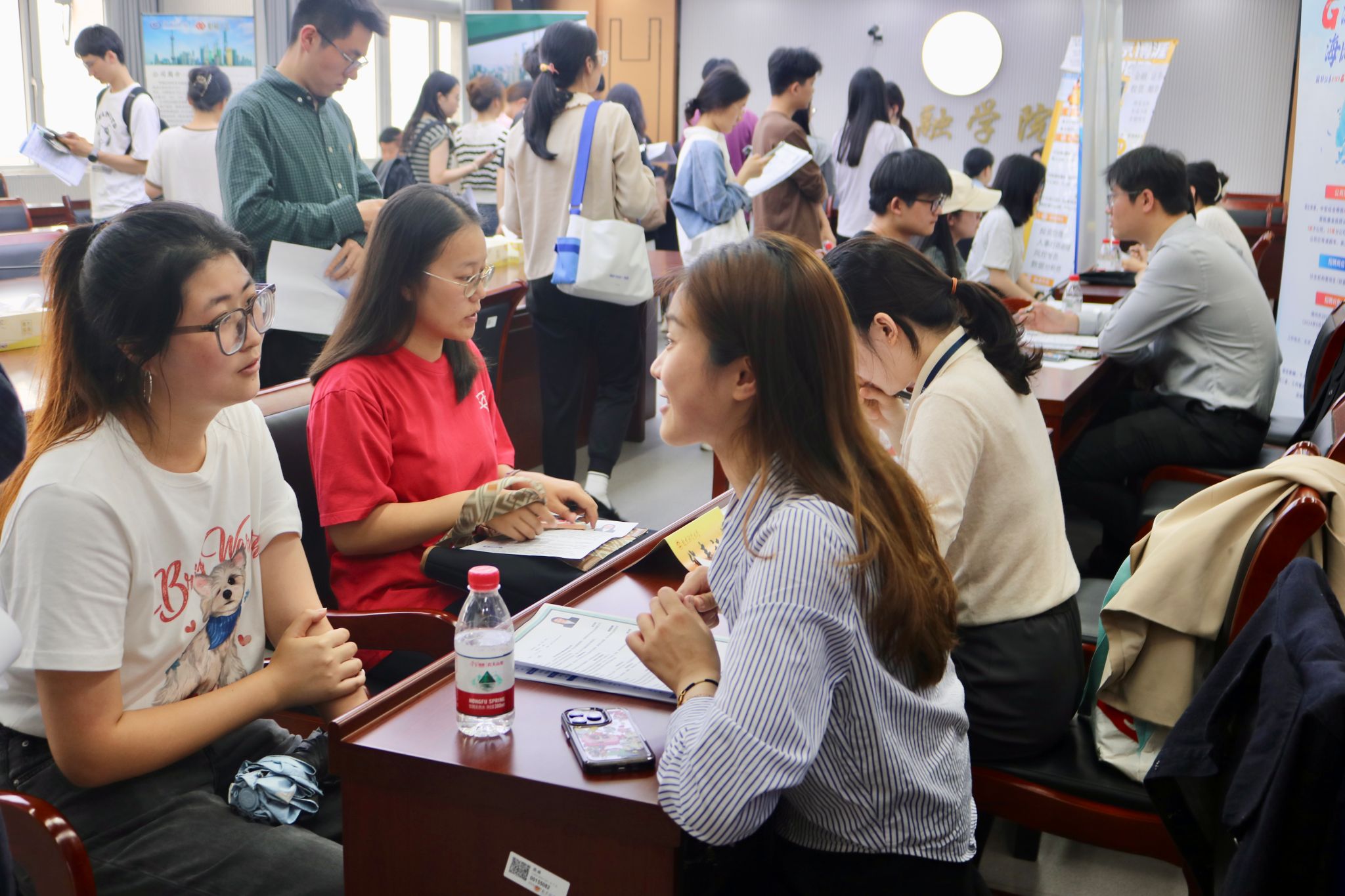 招聘会结束后,新东方、中信证券、阳光人寿江苏分公司等多家公司走进德业楼,开展校企合作洽谈与专场招聘会。