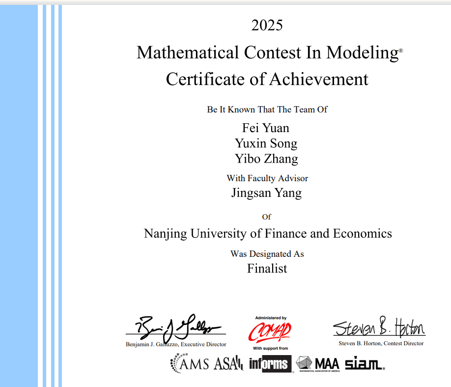 我校学子在2025年美国大学生数学建模竞赛中获特等奖提名