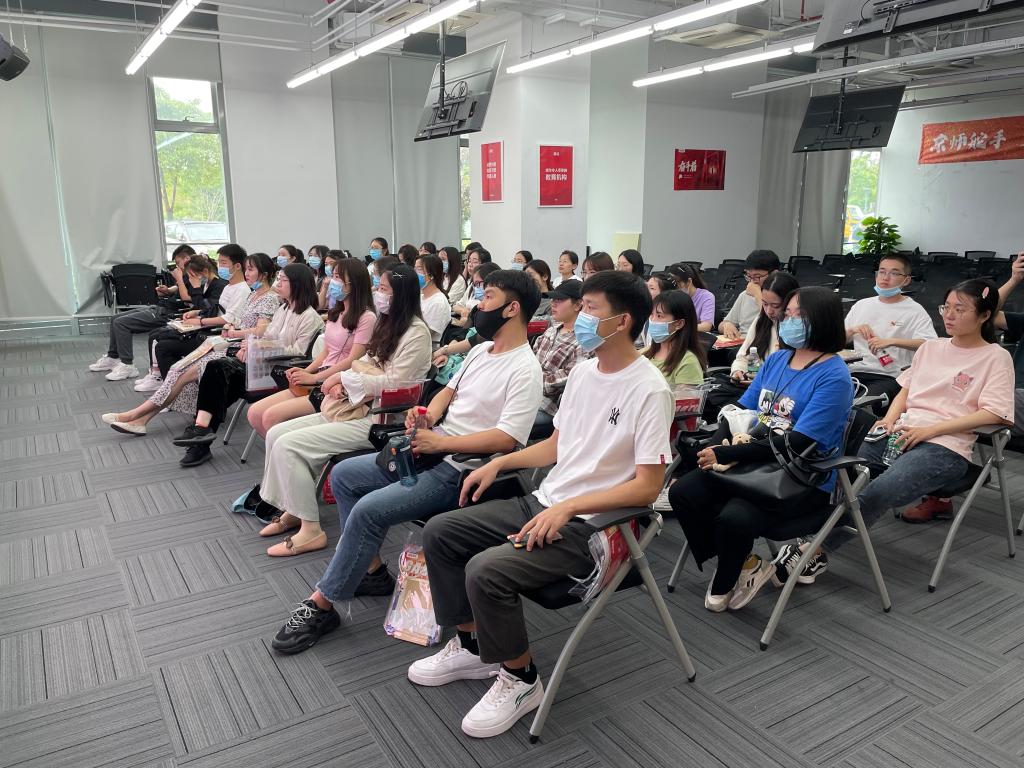 高途课堂南京校园招聘部负责人季晓麒介绍了高途集团的概况和发展历程,讲述了高途集团自成立以来在各个重要的转型节点所做出的创新与发展,并对其企业架构、足球比赛直播-看球直播、社会责任和岗位职责等方面作了细致的分享,指出在线教育契合了时代的需求,是朝阳行业,发展前景广阔。随后,他带领全体师生参观了公司内部不同岗位的工作环境,并和同事共同指导同学们进行职业生涯规划。