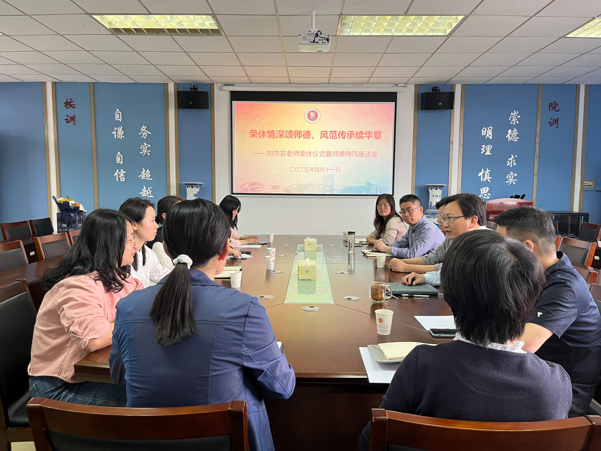 向刘亦农老师献上鲜花,表达对他的崇高敬意。全体参会老师合影留念,记录下这一珍贵时刻。