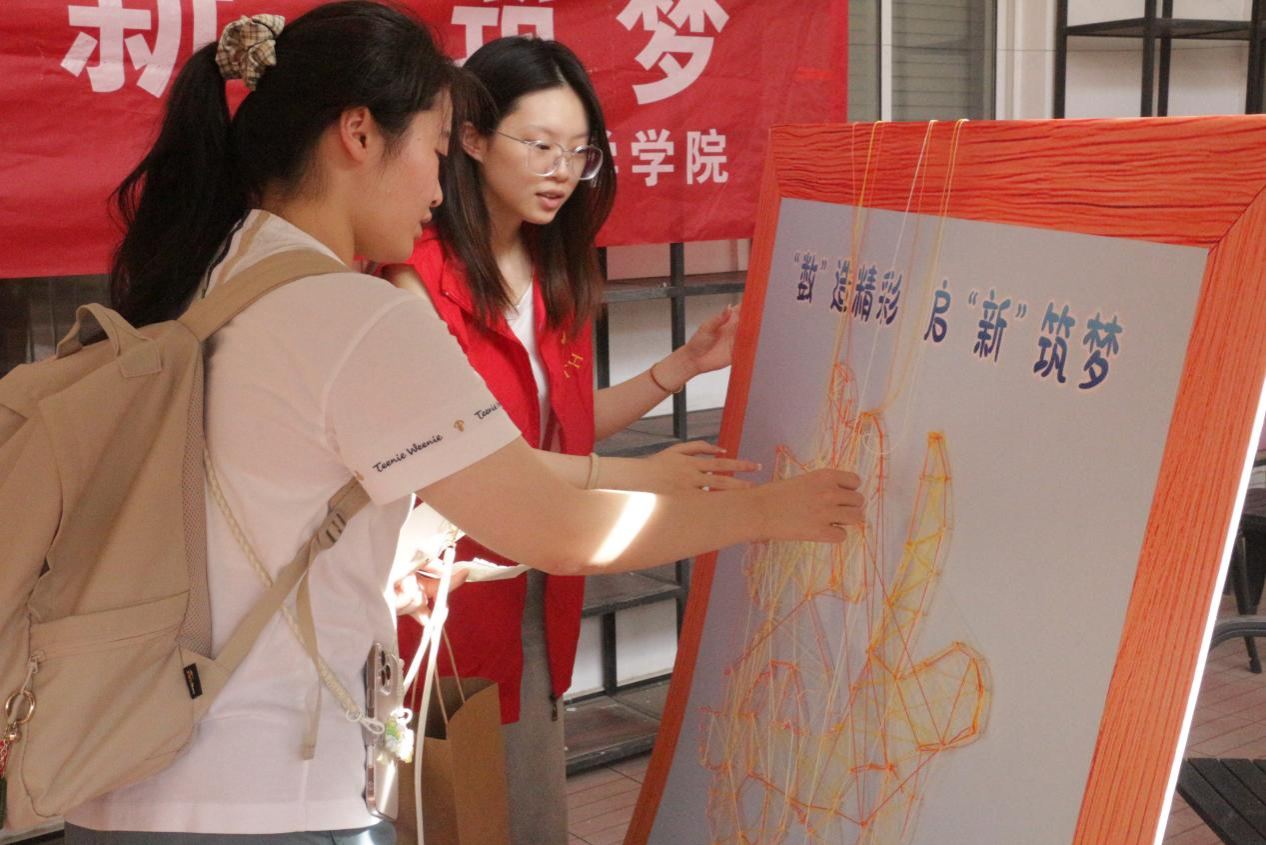 德业楼六楼,“缠线启程”活动吸引众多新生驻足参与。同学们自由挑选彩线,在缠线板上缠绕出各具特色的图案。这既是一场创意手工,也是一次数学之美的生动体验——线条的交织展现出数学的结构、随机与韵律,让抽象知识变得可触可感。彩线不仅连起了彼此初识的缘分,也串联起新生与数学学科的第一次对话。随后的数学字谜活动将气氛推向高潮。同学们或独自沉思,或结对讨论,在解谜过程中激发思维、增进交流,迅速拉近了彼此的距离。