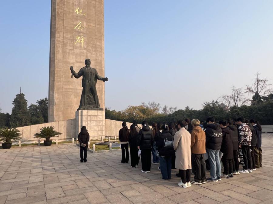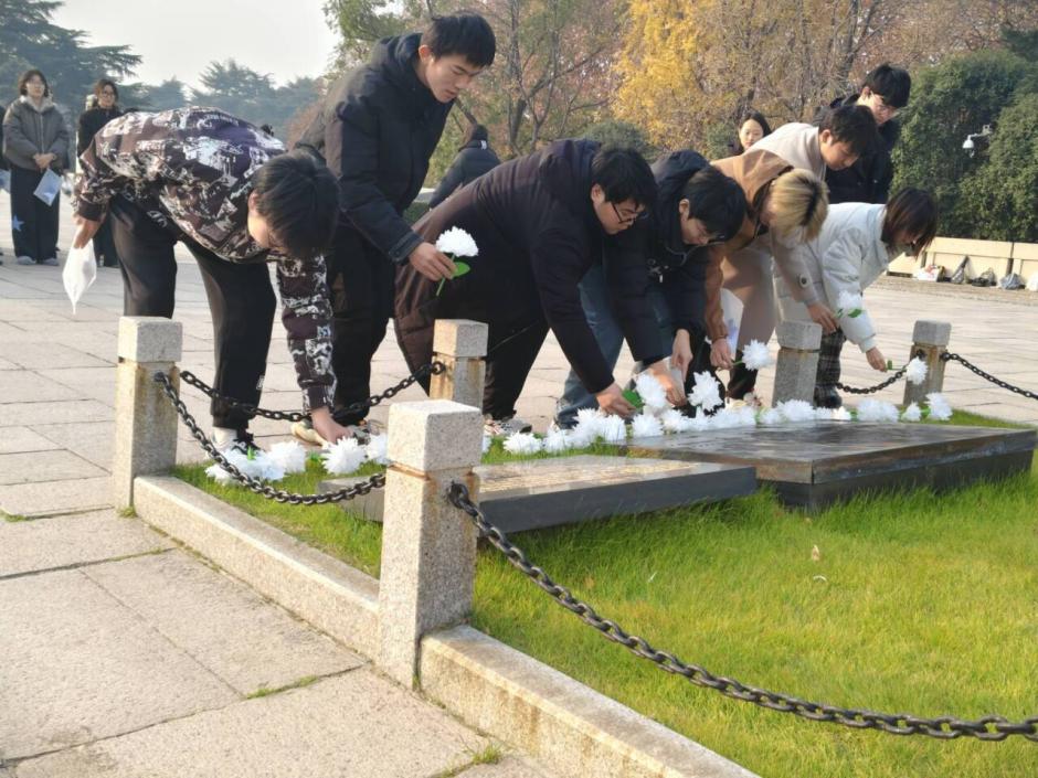 12月11日上午,怀着对英烈的无限敬仰,同学们赴南京雨花台烈士陵园开展实地致敬活动。抵达后,全体成员在入口处集合,整理着装与纪念袋,随后肃立列队,缓步步入纪念碑广场。大家保持庄严肃穆,致敬仪式正式开始。全体成员面向革命烈士纪念碑肃立默哀1分钟,深切缅怀英烈。默哀完毕,学子们依次上前,将亲手制作的手工制品敬献于纪念碑前,鞠躬致敬,表达对英烈的崇高敬意。随后,在领誓人的带领下,大家举起右拳庄严宣誓:“铭记英烈事迹,传承红色基因;坚定理想信念,勇担时代使命;以青春之我,创青春之国,不负韶华,不负英烈!”铿锵誓言回荡在广场上空,彰显着新时代青年的责任与担当。