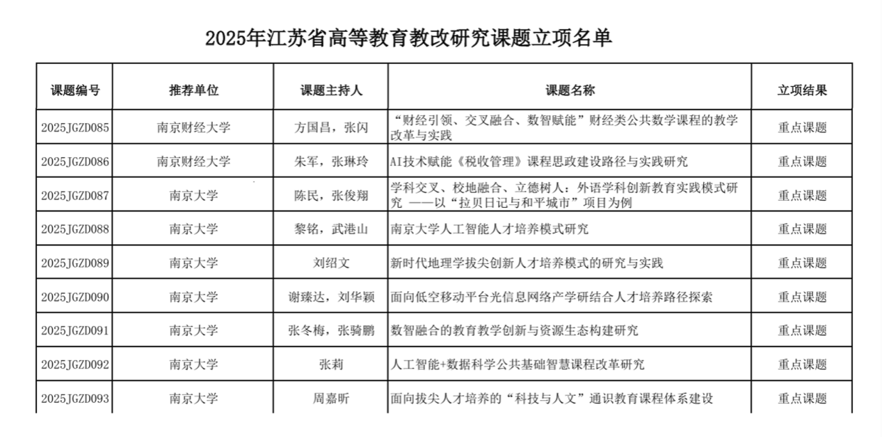 近日,江苏省高等教育学会发布了《关于公布2025年江苏省高等教育教改研究课题立项评选结果的通知》(苏高教会〔2025〕30号),看球直播